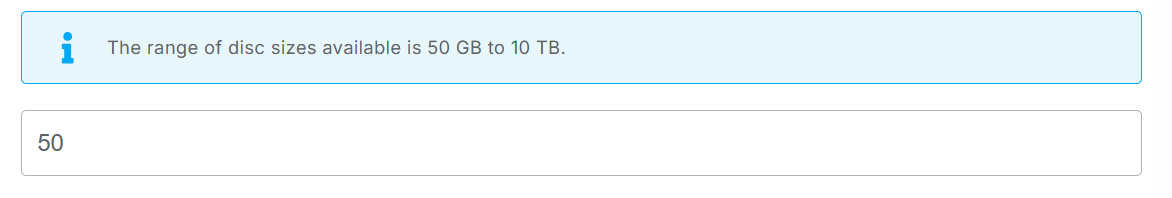 By default, we configure it with 50 GB, but you can change it as needed between 50 GB and 10 TB.
