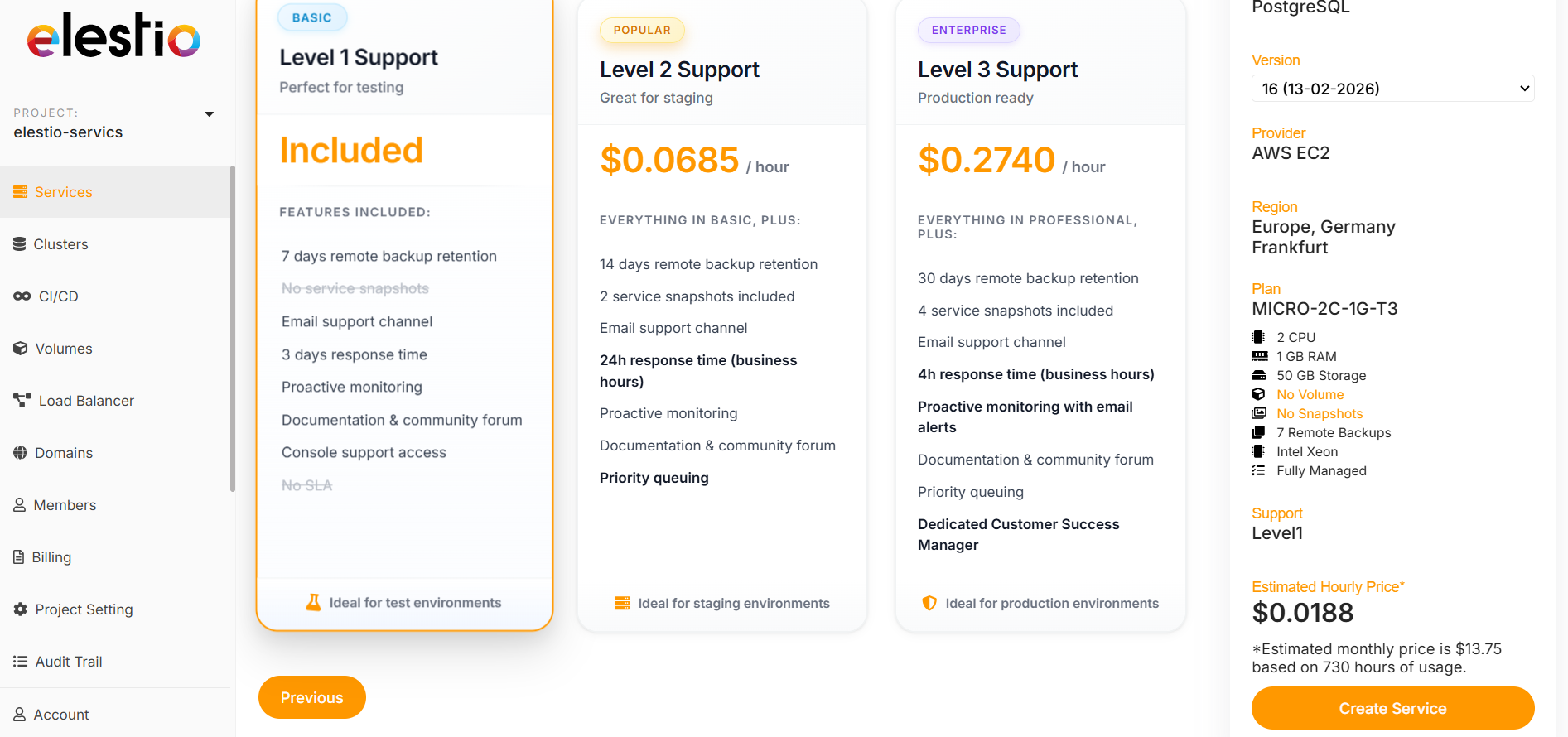 Hetzner, Digital Ocean, LightSail, Linode, and Vultr providers' services are deployed on Elestio accounts, whereas AWS is Bring Your Own AWS account, so all of the services are deployed in your own AWS account.