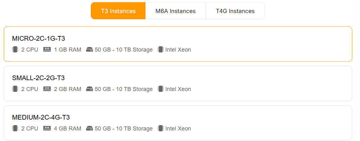 You can view a detailed list of all the AWS EC2 plans we offer.